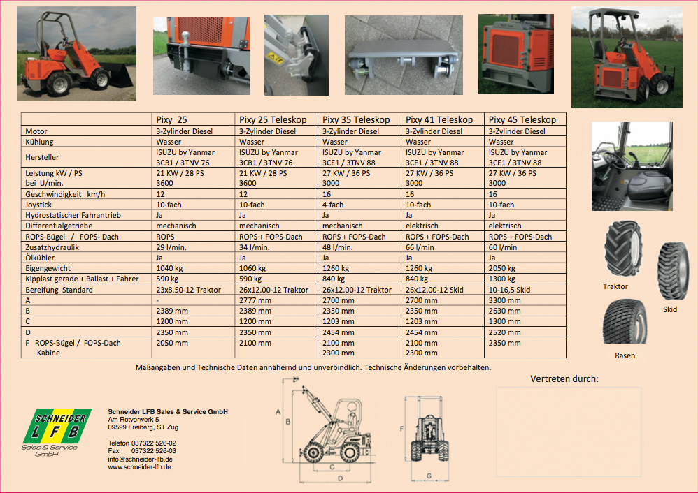Hier finden Sie die unterschiedlichen Leistungsklassen der Minilader, die Abmessungen und Besonderheiten.